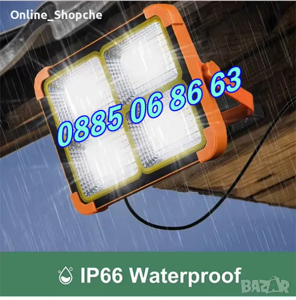 Соларен прожектор 100W с 4 режима на работа, къмпинг лампа 210х170 мм