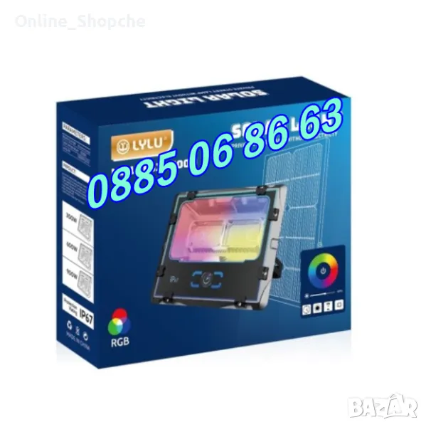 Многоцветен соларен прожектор 400W с WIfi връзка и дистанционно управление