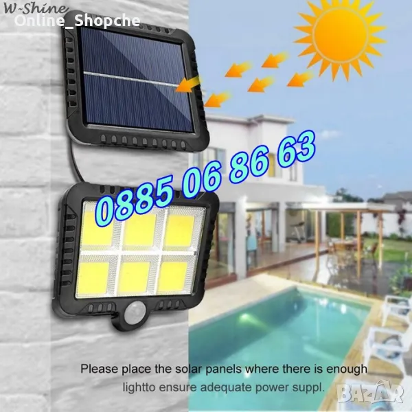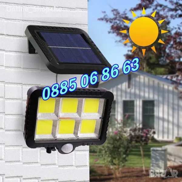 LED соларна лампа с отделен соларен панел, кабел 5 м/соларен прожектор