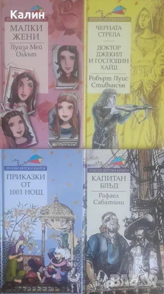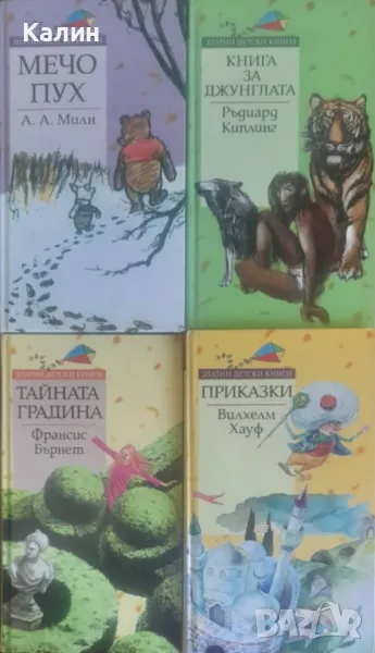 Продавам десет книжки от поредицата „Златни детски книги” на книгоиздателска къща „Труд”. Книжките са с твърди корици, в отлично състояние. Изпращам по Еконт или Спиди за сметка на получателя с 10% отстъпка от куриерската услуга, с опция „Преглед". За София е възможно лично предаване в центъра. Има вариант за плащане и по Revolut.