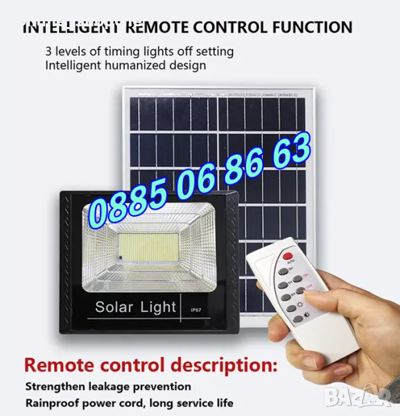 LED прожектор 100W със соларен панел, соларен прожектор 100W