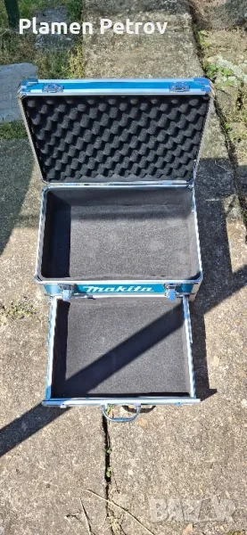 ,Изключително запазен куфар на 2 нива, облечен с дунапрен марка Makita, алуминиев изцяло