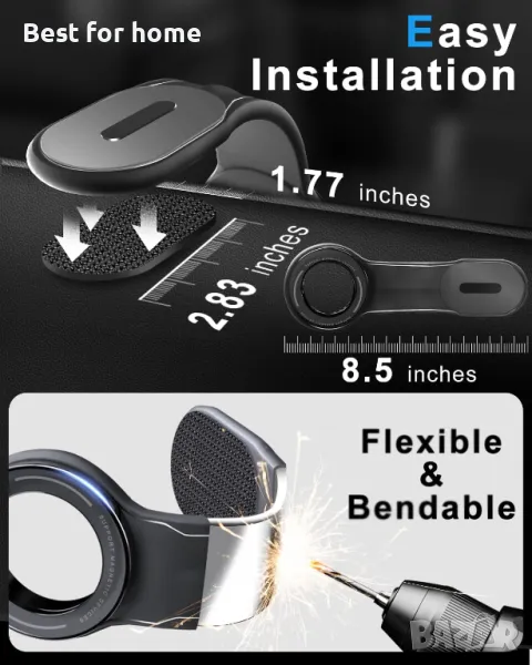 Лесен монтаж: Просто залепете лепящата подложка 3M върху всяка гладка повърхност, след което прикрепете държача към подложката. Подобреното лепило 3M предлага 200% по-силно задържане и не оставя следи след отстраняване.