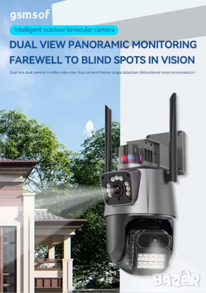 Камера с два обектива 6mpx, следене на движение, звукова и светлинна сигнализация