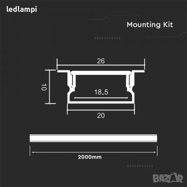 Алуминиев Профил За Вграждане 2000х20x10mm Широк, снимка 1 - Лед осветление - 50302049 Алуминиев Профил За Вграждане 2000х20x10mm Широк, снимка 2 - Лед осветление - 50302049 1/2