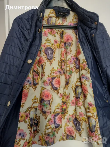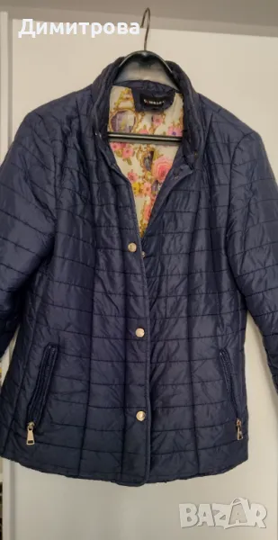 Продавам тъмно синьо яке с цветя отвътре - размер М - цена 5 евро.