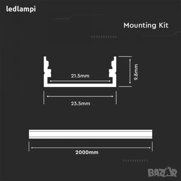 Алуминиев Профил За LED Лента 2000х23,5x10mm Широк MILKY, снимка 1 - Лед осветление - 50302832 Алуминиев Профил За LED Лента 2000х23,5x10mm Широк MILKY, снимка 2 - Лед осветление - 50302832 1/2