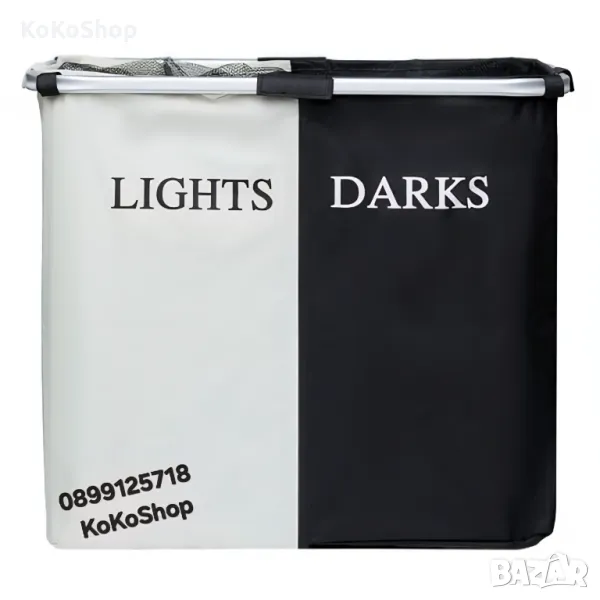 Кош за пране с две разделения-за светли и тъмни дрехи.Практичен и удобен модел.