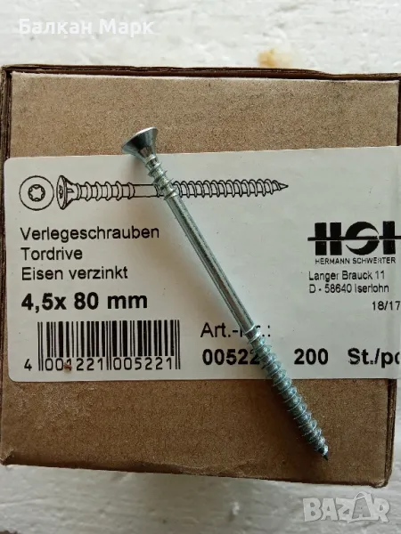 🔩 ВИНТОВЕ TORX,с поддържаща резба ЗА ДЪРВО,ПДЧ,OSB,дюшеме-4.5х80мм- 200бр./оп.
