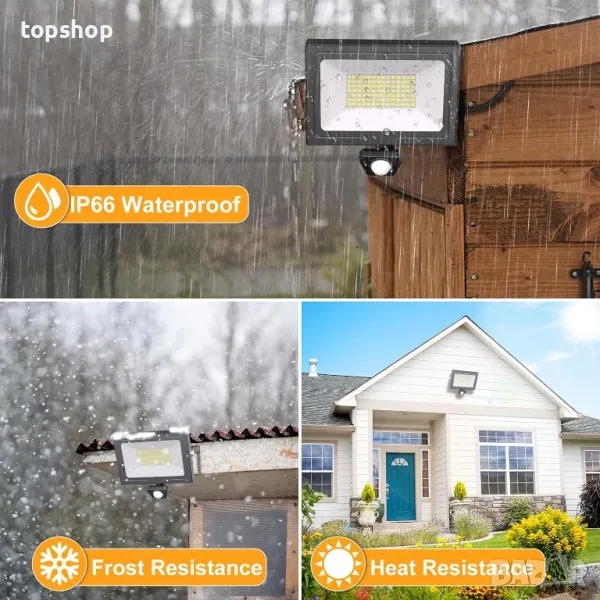 Linke 80W охранителен LED прожектор с PIR сензор, IP66 водоустойчив, сензор за движение, 7200 лумена