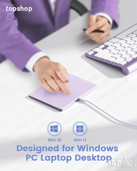 Тъчпад Seenda за Windows 10/11, външен кабелен тънък алуминиев USB тракпад 6,3 инча, стъкло Н7,лилав