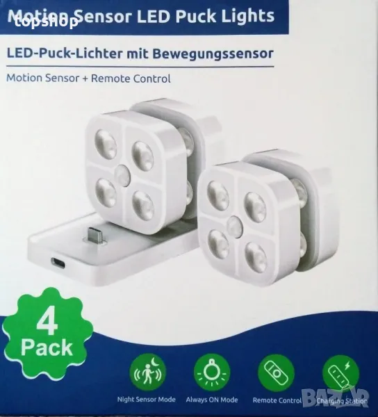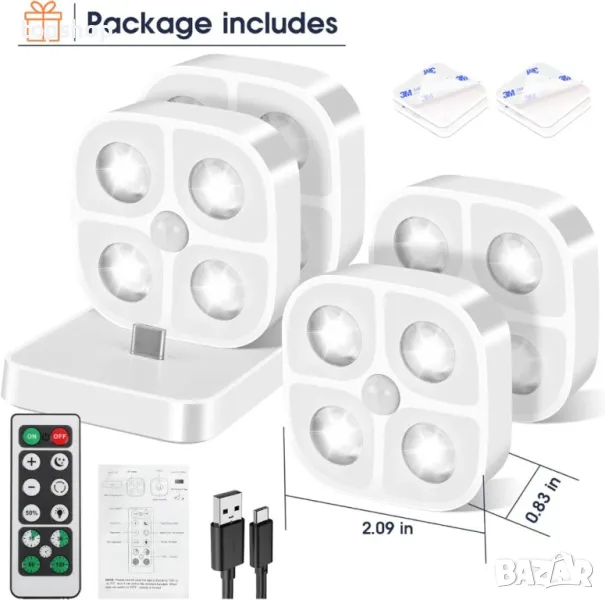 LADYSONS Вътрешни лампи със сензор за движение, безжични LED, 4 броя
