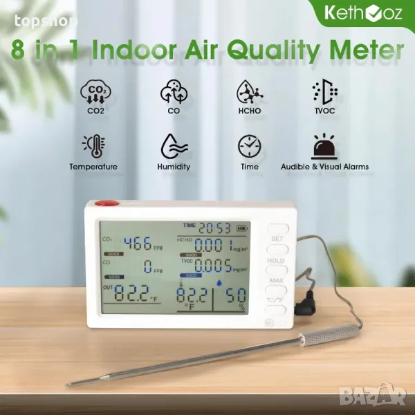 Kethvoz 8 в 1 Монитор за качество на въздуха на закрито с външна сонда
