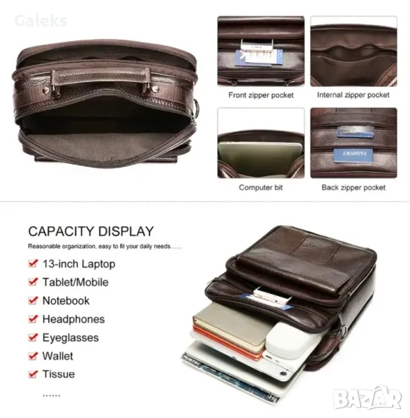мъжка кожена чанта с много висока функционалност и насоченост!