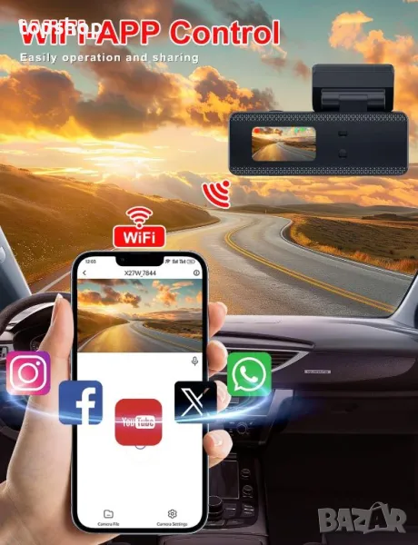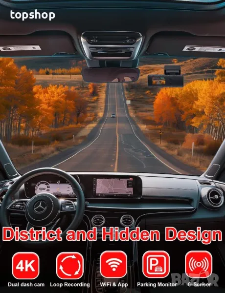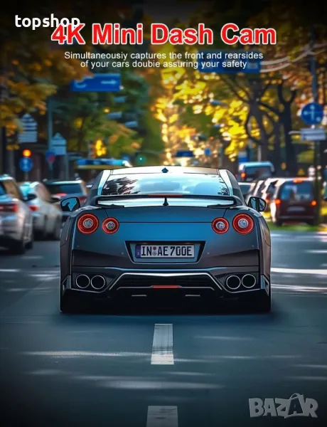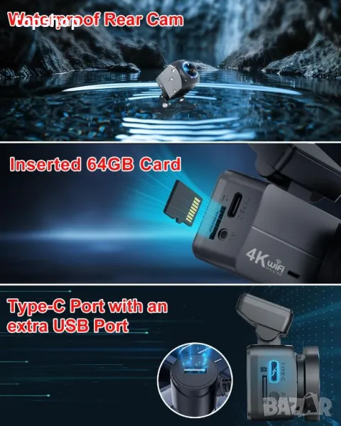 Предна и задна камера за управление 4K+1080P, WiFi, 64GB SD карта, с нощно виждане, G-сензор