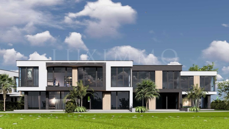 Представяме за продажба еднофамилна къща в модерен архитектурен стил, част от нов ваканционен комплекс от затворен тип, състоящ се от 37 жилищни сгради, обособени в самостоятелни дворове.