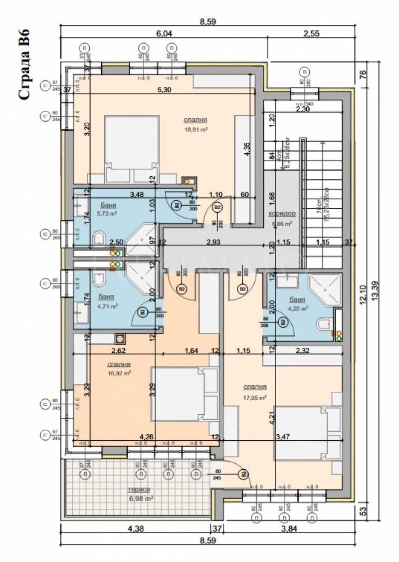 стоманобетонна конструкция - 3 m-H (височина) на етажа;