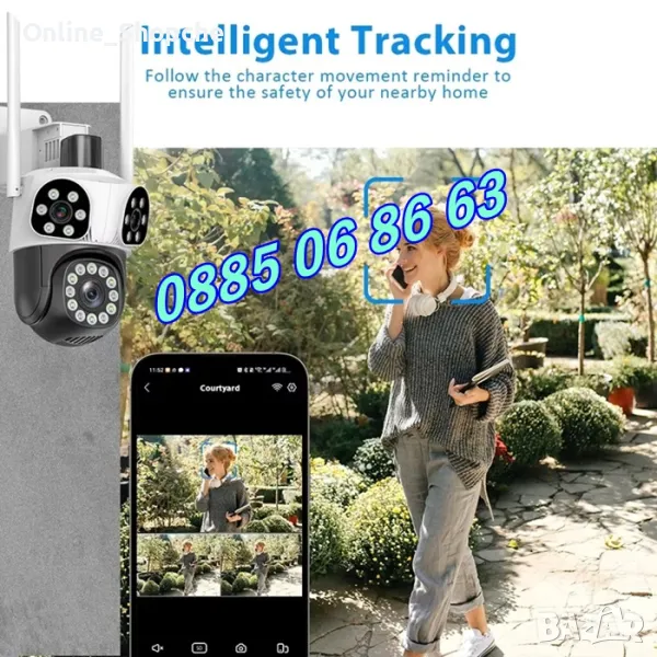 - Автоматично проследяване: Способност за проследяване на движещи се обекти след заключване на целта и известия на смартфона.