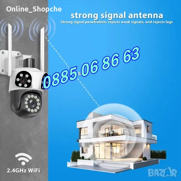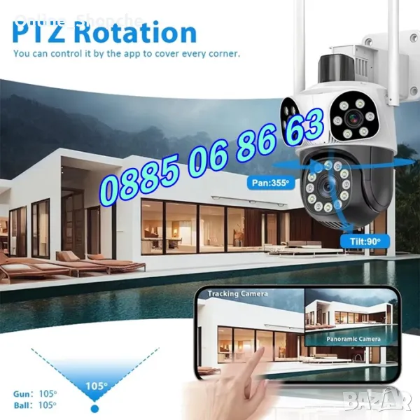 - Широк обхват на виждане: Въртене на 270 градуса хоризонтално и наклон на 90 градуса вертикално. Поддържа двупосочен аудио разговор в реално време и функции за откриване на движение и аларма.