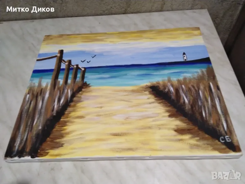 Картина пейзаж акрилни бои Пътека на плажа край морето -335х415см → Обява 50303536