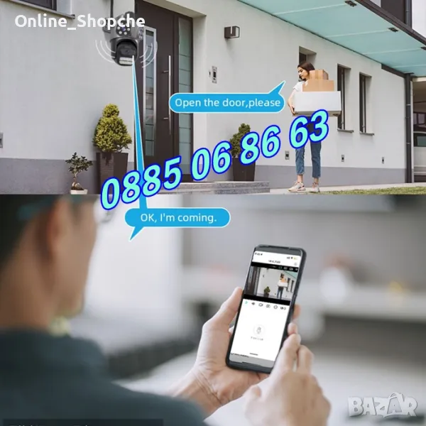 - Широк обхват на виждане: Въртене на 270 градуса хоризонтално и наклон на 90 градуса вертикално. Поддържа двупосочен аудио разговор в реално време и функции за откриване на движение и аларма.