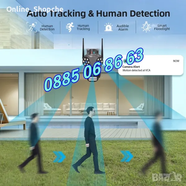 - AI Human Detect Alert: Бързо открива човешки цели и изпраща известия на телефона, предотвратявайки фалшиви сигнали за обекти като автомобили и дървета.