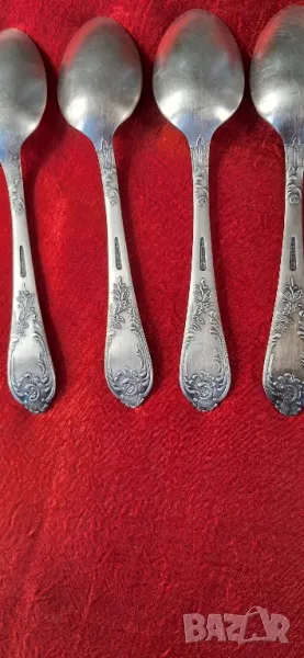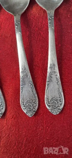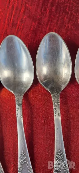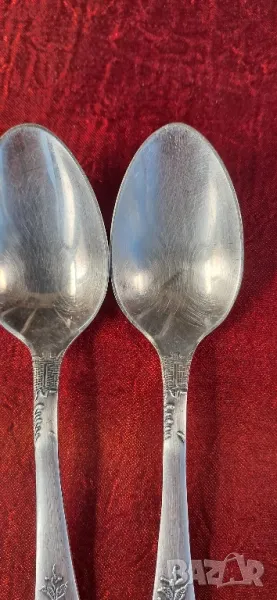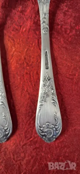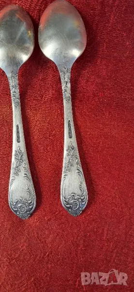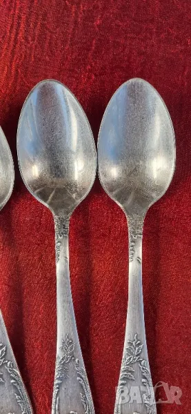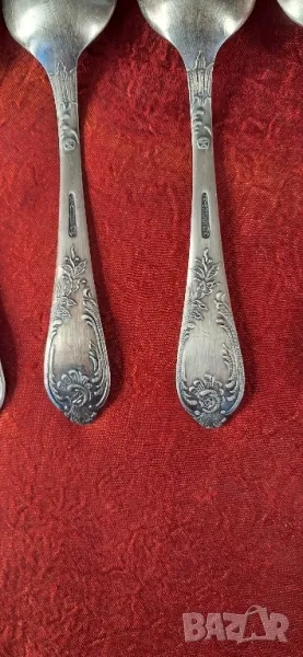 Стари Руски дълбоко посребрени супени лъжици, състояние видно на запазени, маркирани Мнц.Комплекта е 6 бр.За колекционери на винтидж предмети и по предназначение.
