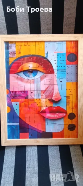 Картина на женско лице с много различни цветове,подходящ за всекидневна, офис → Обява 50304355
