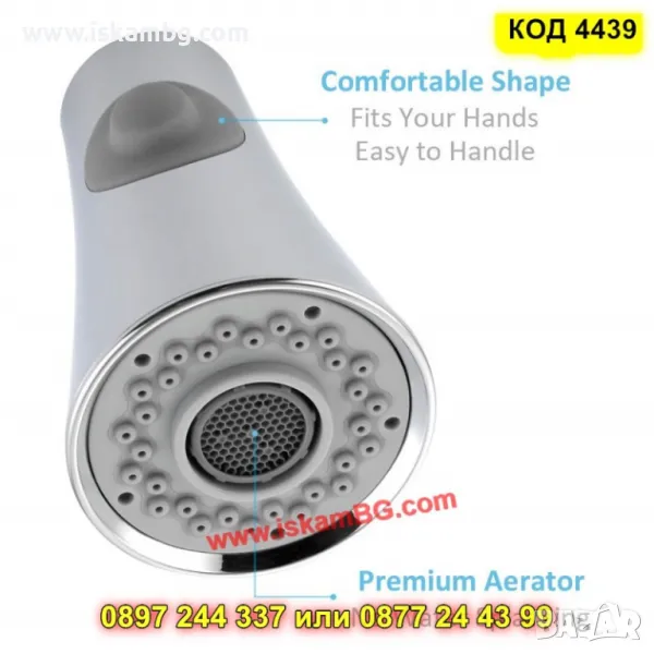 Аератор за кухненски смесител с 3 функции и удобен бутон – вашият нов помощник за по-лесно и ефективно почистване в кухнята. С него ще можете лесно да превключвате между силна струя, нежен спрей и пауза, само с едно натискане на вградения бутон. Подходящ е както за миене на съдове, зеленчуци и плодове, така и за почистване на самата мивка.