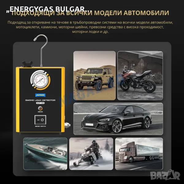 Широка гама от приложения: Детекторът за изтичане на дим AUTOOL SDT60 е подходящ за откриване на течове в автомобили, мотоциклети, моторни шейни, ATV, лекотоварни камиони и скоростни лодки, подходящ за всички модели (само за 12v DC).