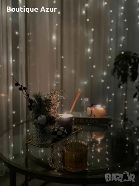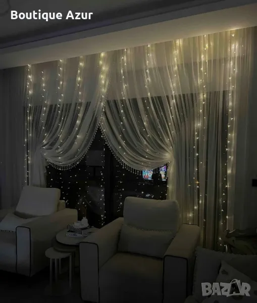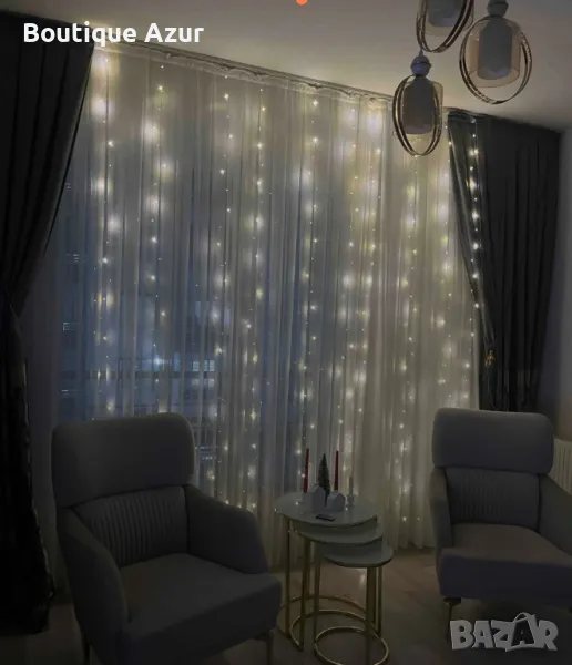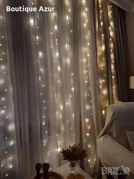 Коледни лампички с 300Led лампи 3 метра на 3 метра ,коледна завеса с дистанционно. С кукички за закачане. Продават се БЕЗ перде