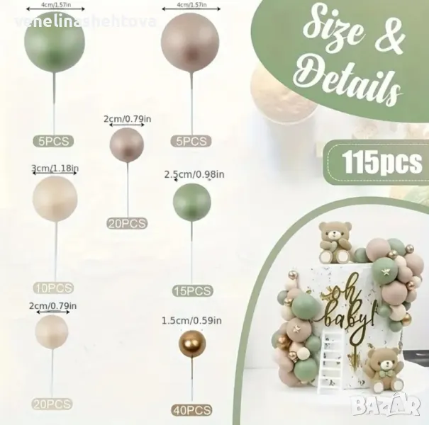115 броя топчета топки на тел от стиропор за декорация на торта → Обява 50307491