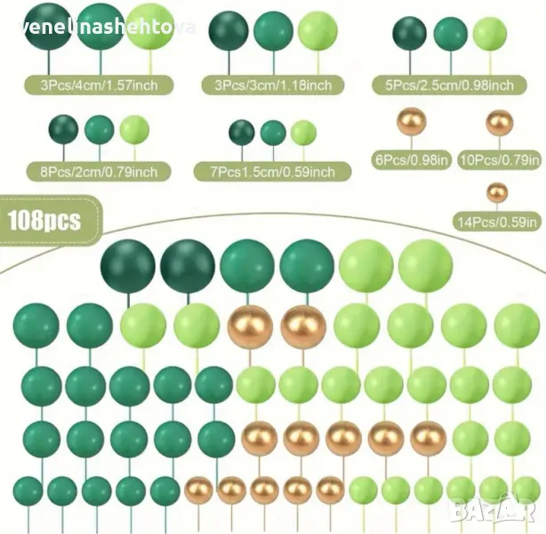 108 броя топчета топки на тел от стиропор за декорация на торта зелени златисти , снимка 1 - Декорация за дома - 50307509 108 броя топчета топки на тел от стиропор за декорация на торта зелени златисти , снимка 2 - Декорация за дома - 50307509 108 броя топчета топки на тел от стиропор за декорация на торта зелени златисти , снимка 3 - Декорация за дома - 50307509 108 броя топчета топки на тел от стиропор за декорация на торта зелени златисти , снимка 4 - Декорация за дома - 50307509 108 броя топчета топки на тел от стиропор за декорация на торта зелени златисти , снимка 5 - Декорация за дома - 50307509 108 броя топчета топки на тел от стиропор за декорация на торта зелени златисти , снимка 6 - Декорация за дома - 50307509 108 броя топчета топки на тел от стиропор за декорация на торта зелени златисти , снимка 7 - Декорация за дома - 50307509 1/7