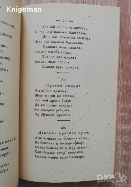 Мала простонародна славено-сербска песнарица, Вуком Стефановичем, снимка 1 - Специализирана литература - 50307843 Мала простонародна славено-сербска песнарица, Вуком Стефановичем, снимка 2 - Специализирана литература - 50307843 Мала простонародна славено-сербска песнарица, Вуком Стефановичем, снимка 3 - Специализирана литература - 50307843 Мала простонародна славено-сербска песнарица, Вуком Стефановичем, снимка 4 - Специализирана литература - 50307843 1/4