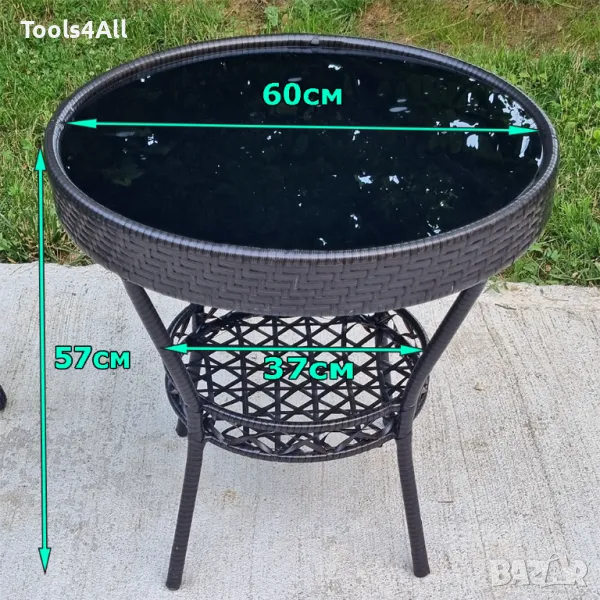 Размери на масата: диаметър ф60 см, височина 57 см, 6 мм темперирано стъкло