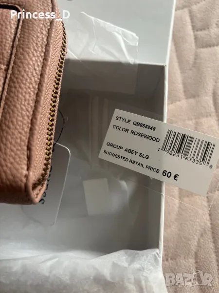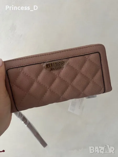 Страхотен портфейл на Guess. Оригинален, с етикети и кутия на марката. Цвета е в телесните нюанси, като отива към розово. Със сваляща се дръжка. Подходящ за подарък, подаравям подаръчна подходяща торбичка на марката.