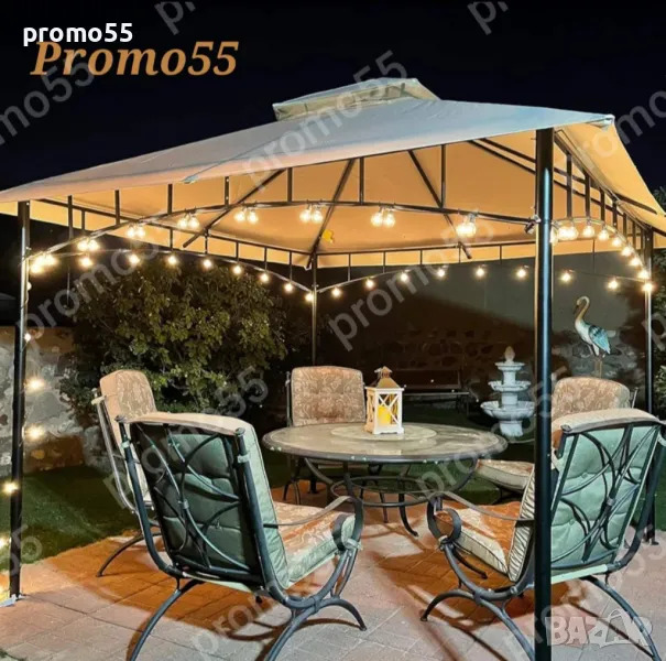 Външна светлина от 20 лед крушки, енерго спестяващи в топло бял цвят, гирлянд от парти лампички нанизани през 50см. на кабел с дължина 10м. Могат да се навържат, снаждат и така се образува светлинна верига дълга до толкова колкото е необходимо.