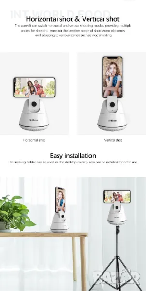 – SriHome SH006 е интелигентен държач за телефон, оборудван с панорамна глава, която може да се върти на 355 градуса.