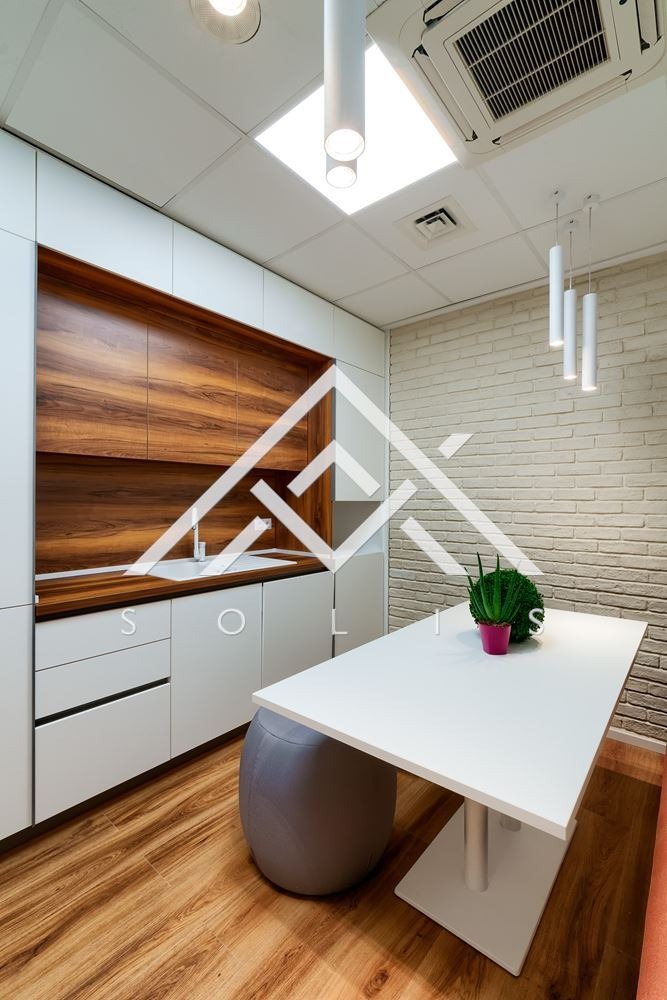 Офисът представлява модерно пространство, съчетаващо в себе си няколко самостоятелни офис, мениджърски кабинет, голяма релакс зона, самостоятелна кухня и санитарни помещения.