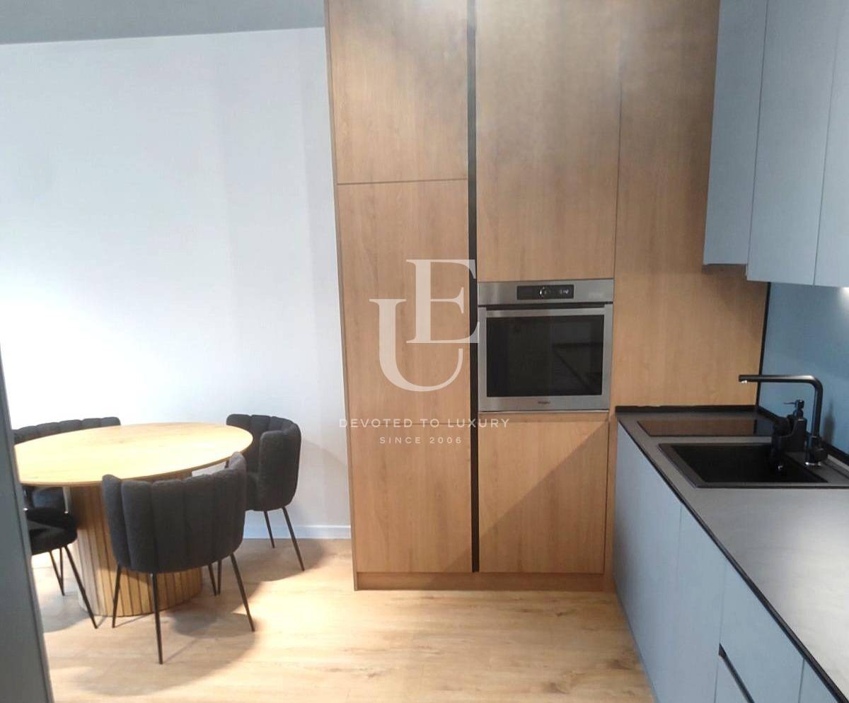 Апартаментът впечатлява с елегантен интериор и функционално разпределение: