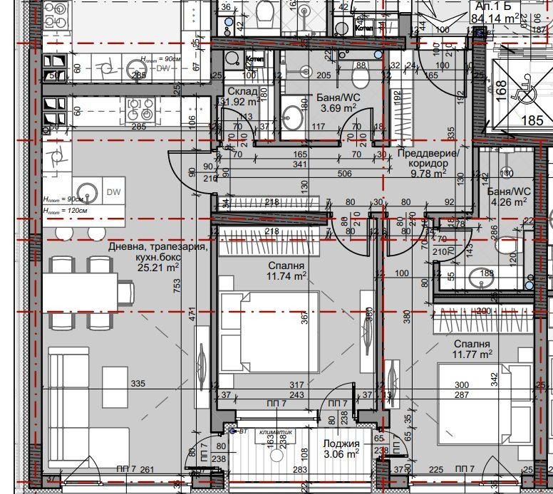 Квадратура: РЗП: 99кв.м; ЗП: 84кв.м.