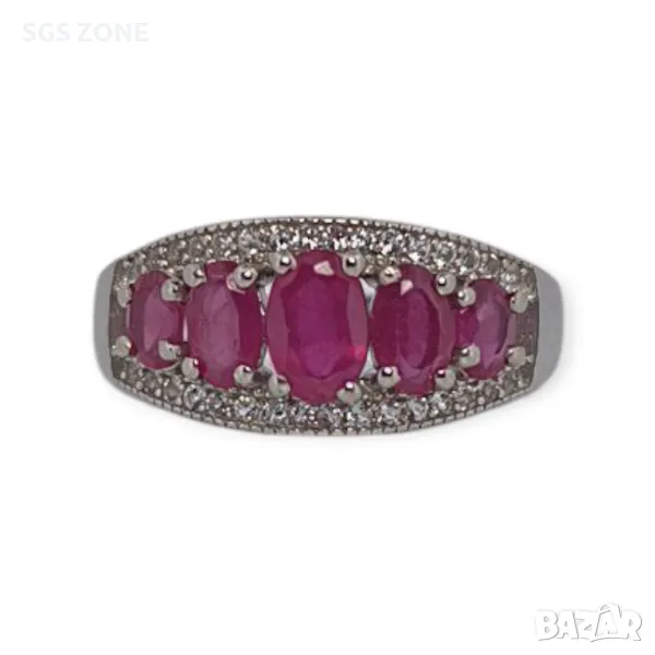 Сребърен Пръстен с Рубин, Сапфир, Изумруд с Прозрачен Топаз → Обява 50310475