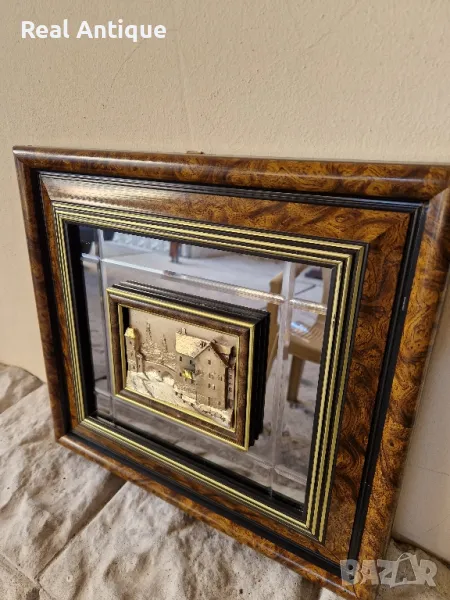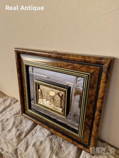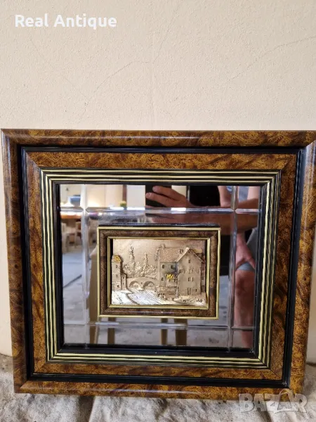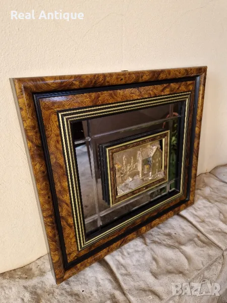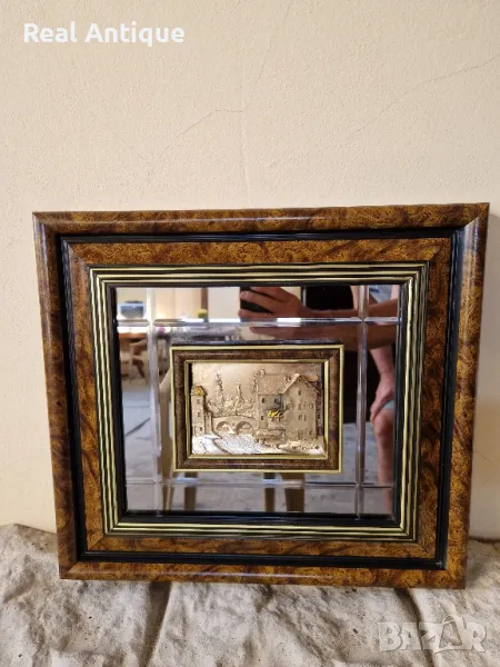 Продавам прекрасна антикварна авторска голяма италианска сребърна огледална картина в перфектно състояние без никакви забележки със страхотна рамка и наличните маркировки. Сребро проба 925.Размери 42 см на 37 см. Чудесно допълнение към интериора на Вашия дом офис вила ресторант хотел. Подходяща и за подарък. Работя с всички куриери. Отговарям бързо.