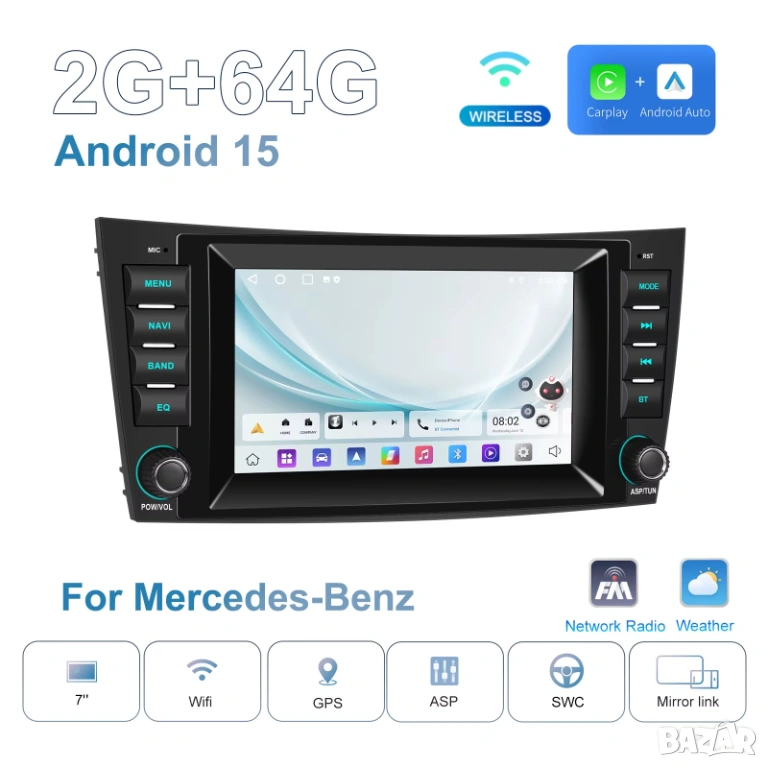 Мултимедия, Mercedes, E Class, Двоен дин, Мерцедес, W211, E200, E220, E270, Е320, Android, CLK клас