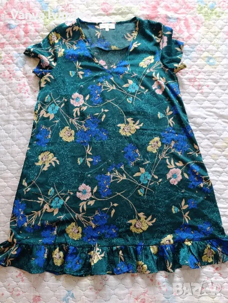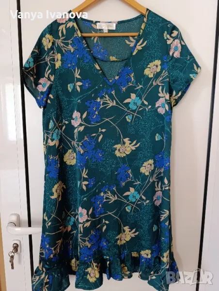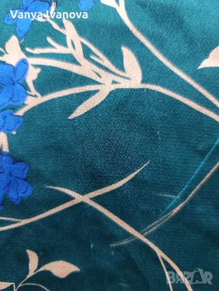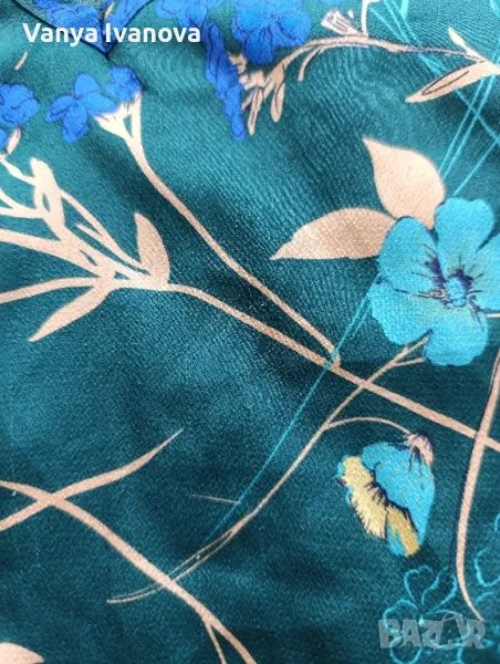 Зелена рокля на цветя с лек ефект на сатен → Обява 50313844