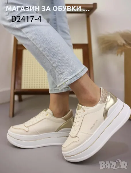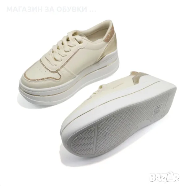 Дамски спортни обувки на платформа от еко кожа, на дългогодишната марка "ЕКСЕС". Дължина на стелка - № 36 - 23,5см / 37 - 24см / 38 - 24,5см / 39 - 25см / 40 - 25,5см. Височина на ходило - предна част - 5см / задна част - 6см. Изпращаме с преглед и тест.