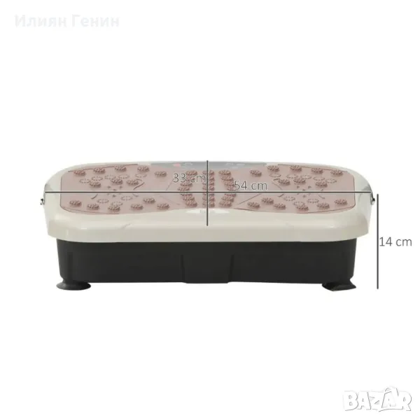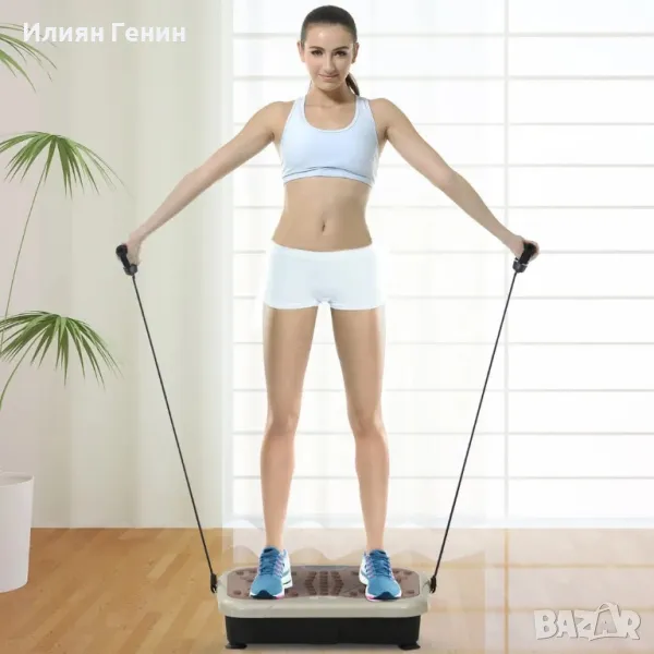 HOMCOM Вибрационна плоча - 220.00лв.Вибрационен тренажор за всеки: Тази вибрационна плоча има 99 нива на вибрация, така че има нещо подходящо за всеки, от лека до силна вибрация.Тренировка без усилие: Просто застанете на чинията и включете устройството с дистанционното управление и изгарянето на мазнини започва. Комбинирайте вибрациите с упражнения като клякания или лицеви опори, ако е необходимо, за да тренирате различни мускулни групи. Двете съпротивителни ленти са идеални за тренировка на ръцете.С музикална функция: Тази вибрационна плоча е оборудвана с USB порт и високоговорител, така че можете да слушате плейлиста си за тренировка, докато тренирате и да го управлявате с дистанционното управление.Ясен LED дисплей: LED екранът ясно показва времето за тренировка и интензитета на вибрациите. По този начин винаги имате всичко предвид по време на тренировка.Данни: Габаритни размери: Д54 х Ш 33 х В 14 см, макс. товароносимост: 120 кг.Описание:✔ С 99 нива на вибрация✔ LED дисплей за показване на интензивност и време✔ Управление на вибрация и музика чрез дистанционно управление✔ 2 подвижни съпротивителни ленти за тренировка на ръцете✔ Възпроизвеждане на музика по време на тренировка чрез USB връзка (импортирайте музика сами)✔ Компактен размер✔ Голяма вибрационна повърхност от 54 x 33 cm, товароносимост до 120 kgВНИМАНИЕ: · Да се използва от деца само под наблюдение на възрастен✔ Не използвайте това устройство, ако сте под медицински грижи или имате физически наранявания.Технически данни:✔ Материал: метал, ABS, TPR гума✔ Цвят: Черен + Бежов + Кафяв✔ Тегло: 9 кг✔ Габаритни размери: Д54 х Ш 33 х В 14 см✔ Мощност: 200 W✔ Напрежение: 220–240 V/50 Hz✔ Честота: 1–12 Hz✔ Макс. товароносимост: 120 кгA90-175
