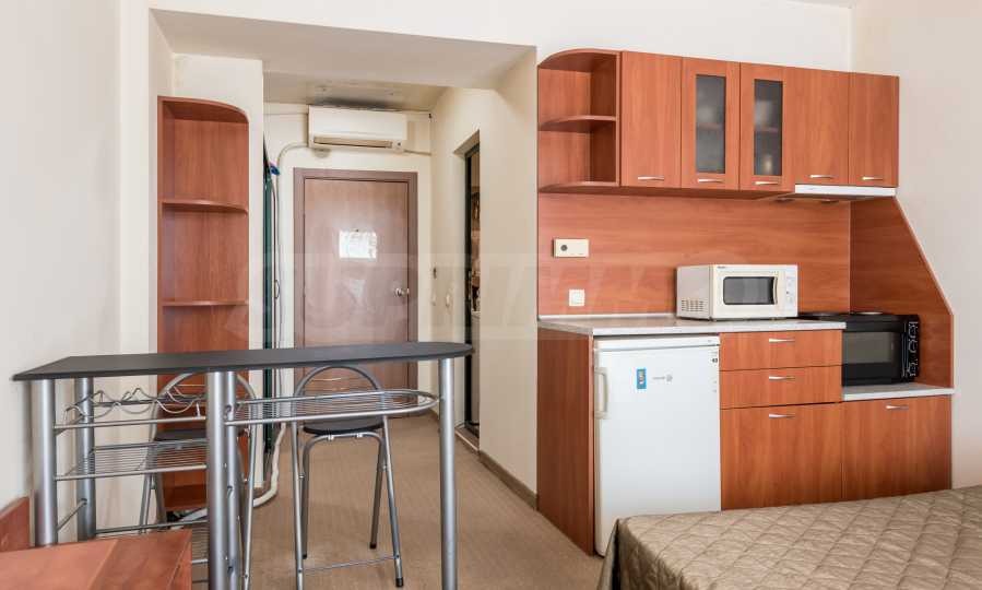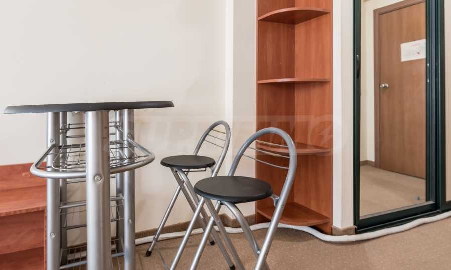 Имотът е разположен на 1-ви етаж и се състои от едно помещение, тераса и санитарен възел. Предлага се с мебели и техника.