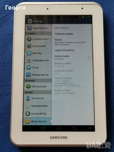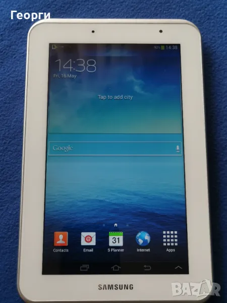 Андроида е старичък и някой приложения не работят. Продава се само таблета, без други аксесоари, зарядното е с широката самсунгова букса.