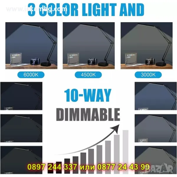 Благодарение на регулируемата яркост с 10 степени, винаги ще имате нужното количество светлина – от мека и уютна до силна и фокусирана. Стабилната стойка тип класическа настолна лампа осигурява сигурност и комфорт, без нужда от захващане за плот.